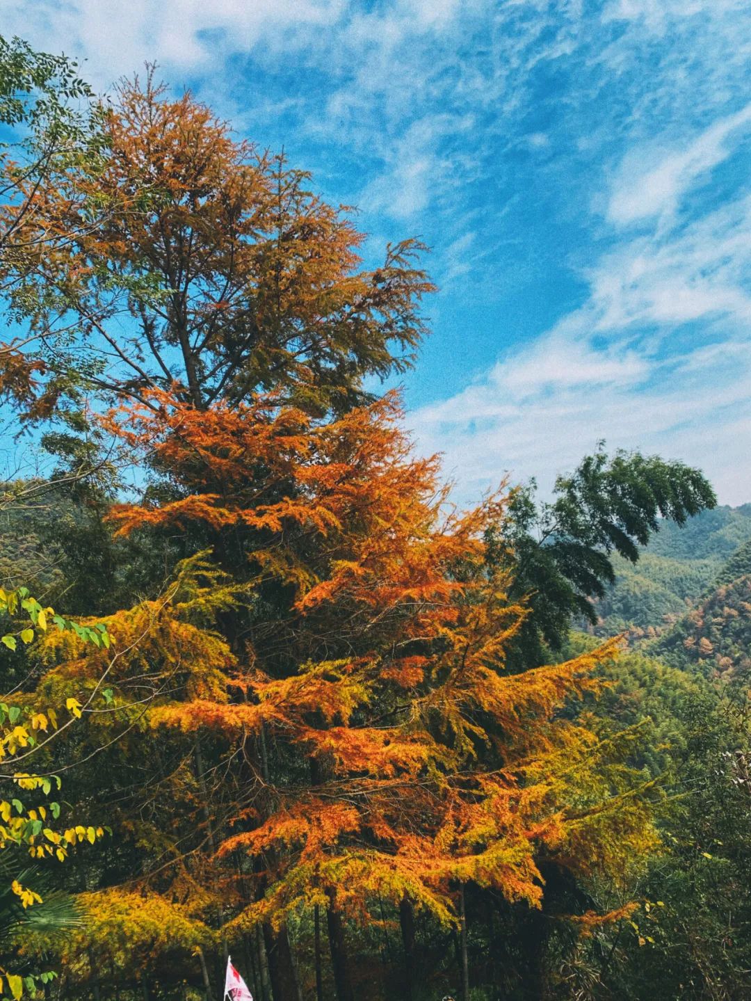 賞秋活動第三站-四明湖紅衫林,位于余姚千年文化古鎮(zhèn)梁弄、四明山第九洞天境內(nèi)。此處紅衫林被譽為"浙江最美紅衫林,一年四季都不缺好風景?,F(xiàn)在也正是賞銀杏、楓葉、水杉的好時節(jié)。大家欣賞著美景,拍照留念,其樂融融。