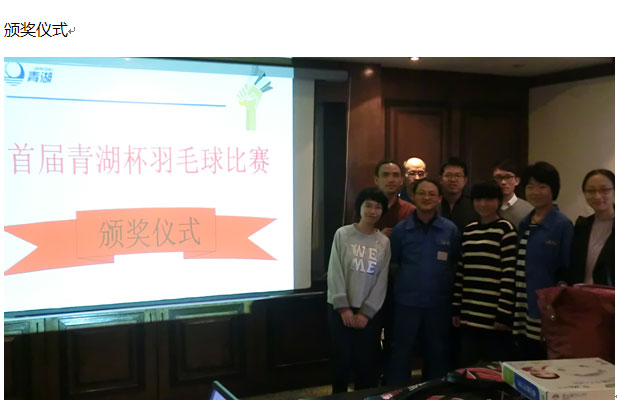 為豐富員工業(yè)余文化生活,增進(jìn)員工之間的交流,給來自不同部門的同事搭建八小時(shí)之外的良好溝通平臺,促進(jìn)“和諧青湖、健康青湖、快樂青湖”建設(shè),2014年11月9日公司在雅戈?duì)栿w育館組織了首屆“青湖杯“羽毛球比賽。本著“我運(yùn)動(dòng)、我健康、我快樂”的目的,來自PMC部、質(zhì)量部、IT部、客服部、人事部等員工踴躍報(bào)名參與,攜手并肩向快樂出發(fā)。